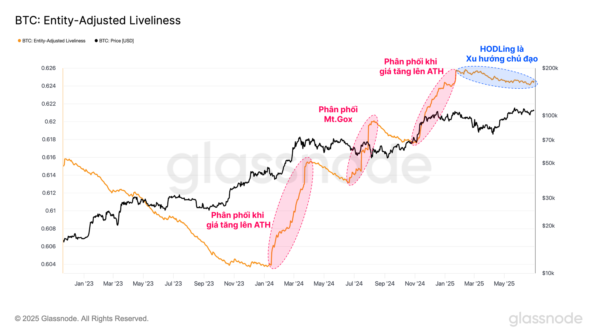 - Xu hướng giảm cho thấy HODLing là cơ chế chủ đạo của thị trường.