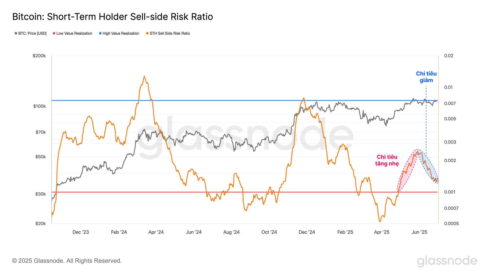 Một cấu trúc tương tự đang nổi lên trong hành vi chốt lời và lỗ của Người nắm giữ dài hạn. Sau một đợt tăng ngắn hạn áp lực bán lên mức cao nhất mọi thời đại, những nhà đầu tư trưởng thành này cũng đã giảm đáng kể chi tiêu của họ.
