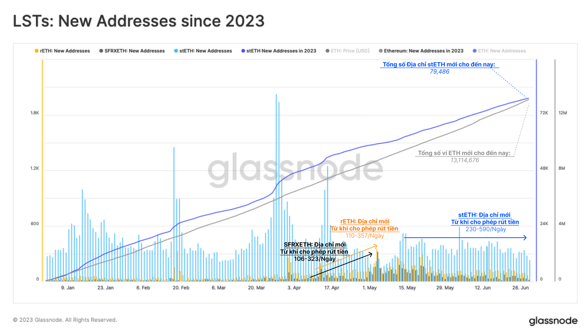 Việc nâng cấp Shanghgai của Ethereum đã được hoàn thành vào giữa tháng 4 và cho phép các nhà đầu tư có thể rút tiền. Thay vì chứng kiến làn sóng rút tiền chúng ta có thể thấy lượng tiền gửi tăng nhanh, với sự ưu tiên rất rõ ràng của thị trường dành cho các token staking phái sinh.