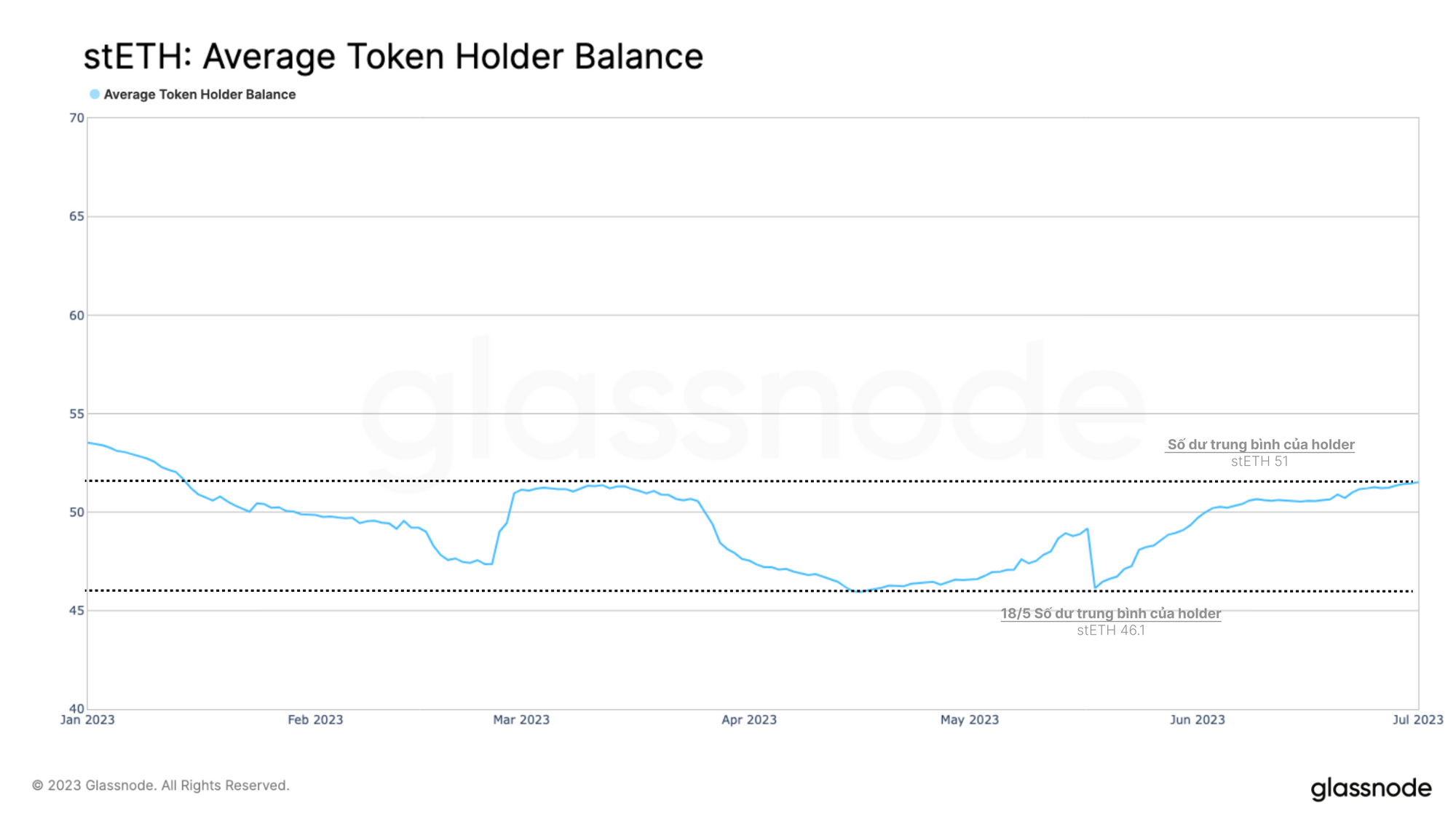 Số dư stETH trung bình đã tăng lên 51.0 stETH ($100k) kể từ nâng cấp Shanghai, cho thấy rằng những người nắm giữ token hiện tại thực sự đang tăng phần ETH được stake dưới dạng stETH. Nó cũng cho thấy rằng vẫn chưa có một lượng đáng kể những người nắm giữ mới tham gia vào thị trường thông qua các cơ chế staking này.