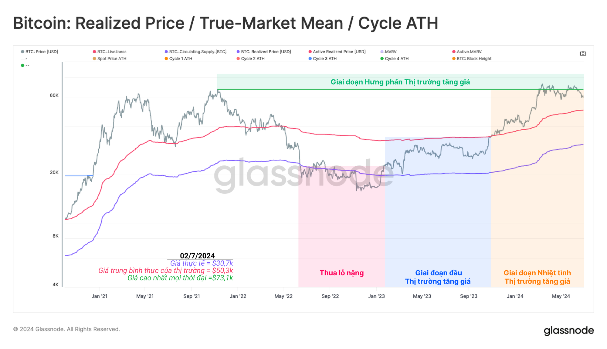 Hiện tại, giá vẫn nằm trong giai đoạn tăng giá Nhiệt tình sau một vài chuyến du ngoạn rất ngắn vào Vùng hưng phấn. Giá trị trung bình thực của thị trường đang ở mức 50.000 USD, đại diện cho cơ sở chi phí trung bình của mỗi nhà đầu tư đang hoạt động.
