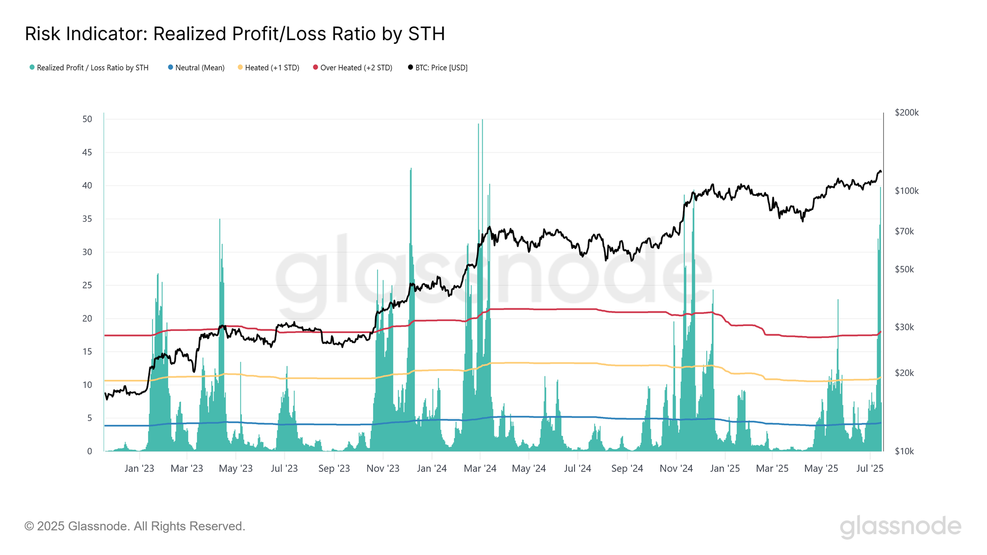 Để đánh giá mức độ thống trị lợi nhuận của các nhà đầu tư gần đây, chúng tôi chuyển sang chỉ số Phần trăm Nguồn cung STH đang có lời. Chỉ số này hiện ở mức 95%, cao hơn độ lệch chuẩn +1 so với mức trung bình dài hạn là 88%, báo hiệu rằng những người mới tham gia thị trường đang tận hưởng sự gia tăng đáng kể về lợi nhuận chưa thực hiện.