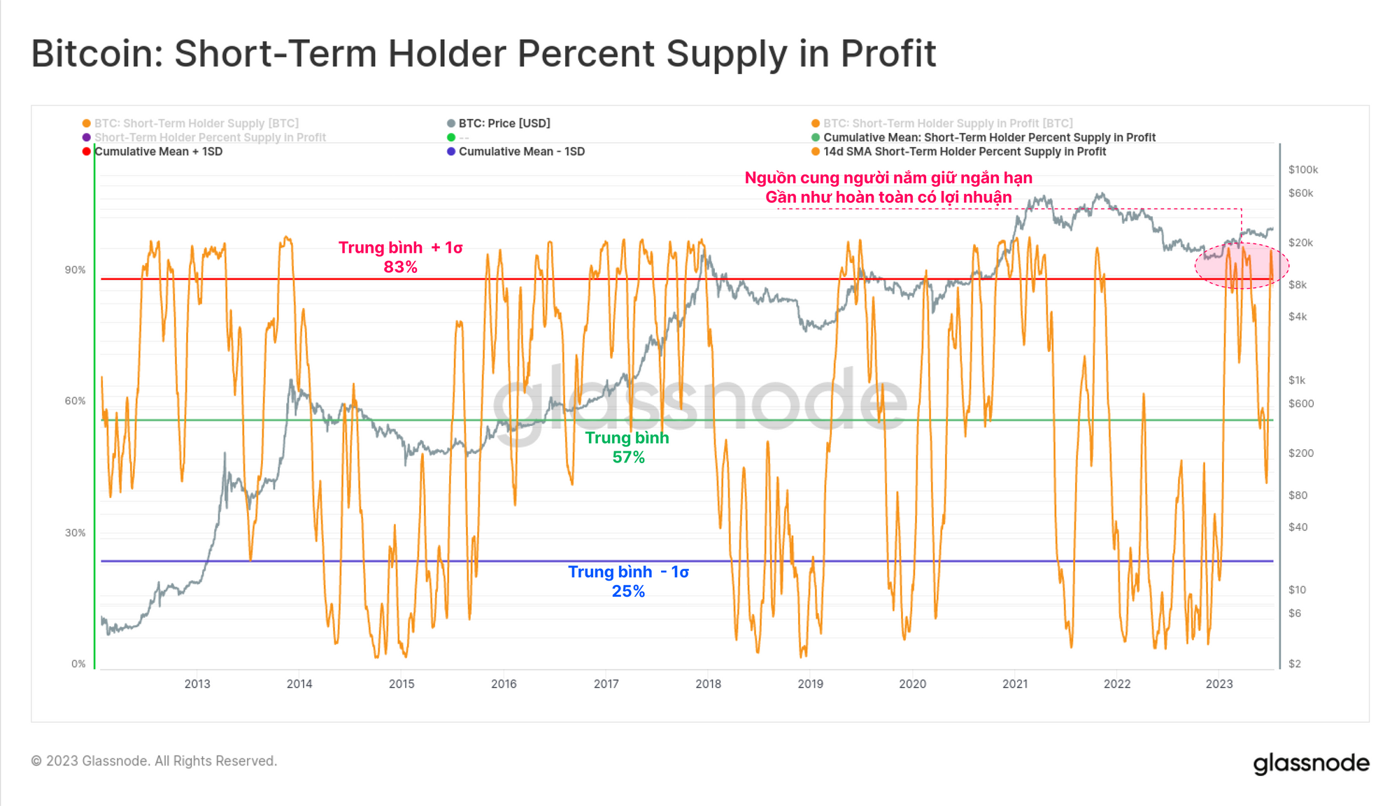 - Thị trường chắc chắn nằm trong chế độ lợi nhuận áp đảo, tuy nhiên mức độ giá trị tính theo USD vẫn ở gần mức thấp nhất trong chu kỳ và các nhà đầu tư vẫn chưa sẵn sàng phân phối nguồn cung mà họ nắm giữ.