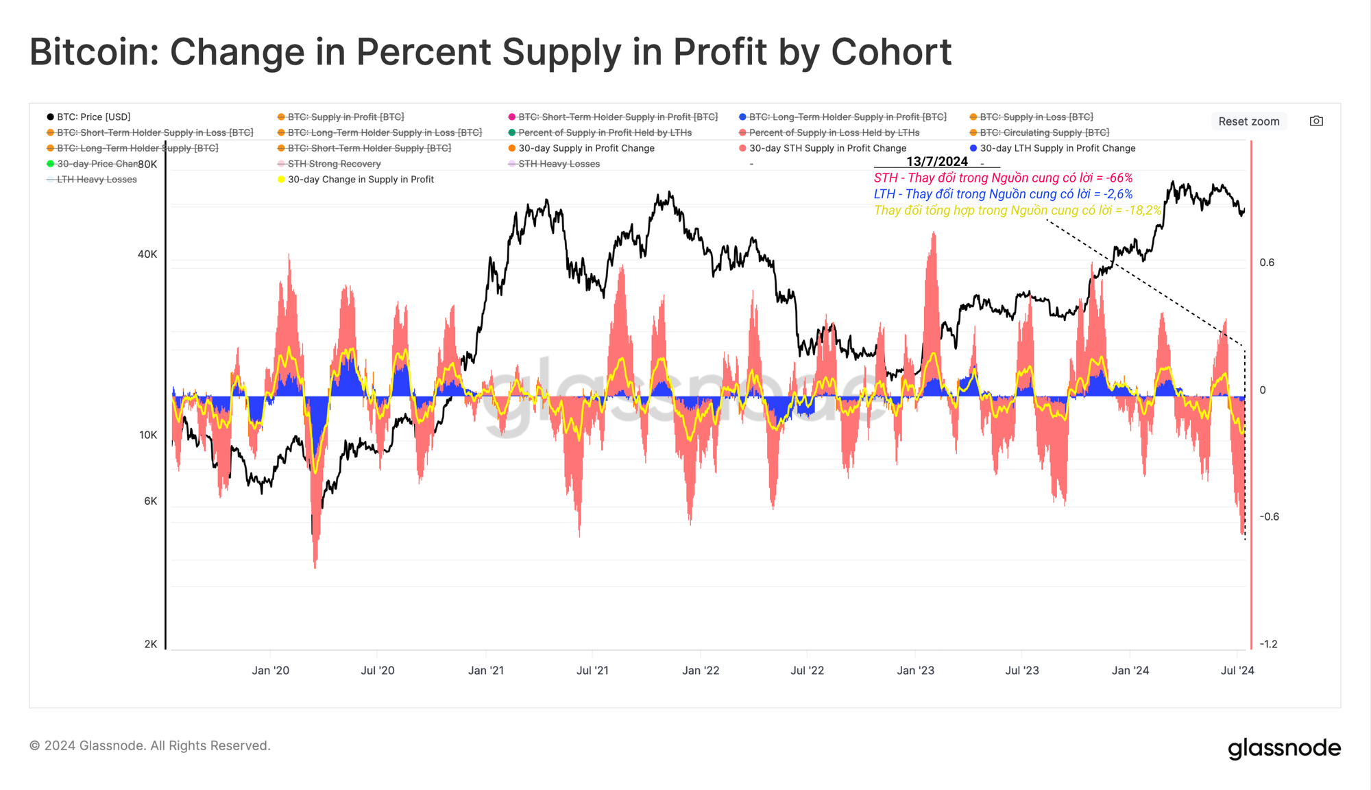Trong 30 ngày qua, nhóm Người nắm giữ ngắn hạn (STH) đã trải qua sự sụt giảm đáng kể về lợi nhuận, với hơn -66% nguồn cung của họ chuyển sang tình trạng thua lỗ chưa thực hiện. Đây là một trong những mức giảm lợi nhuận lớn nhất của STH được ghi nhận.