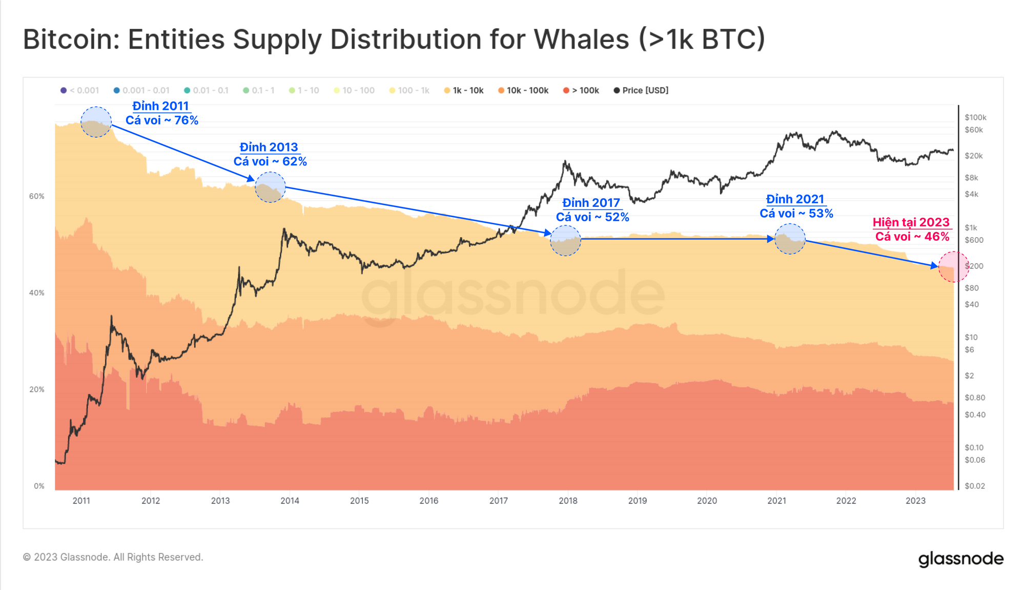 Điều quan trọng cần lưu ý là ở đây, các thực thể Cá voi sẽ bao gồm các sàn giao dịch, cũng như các cổ phần tập trung lớn như các sản phẩm ETF, GBTC, WBTC và các cổ phần công ty như Microstrategy.