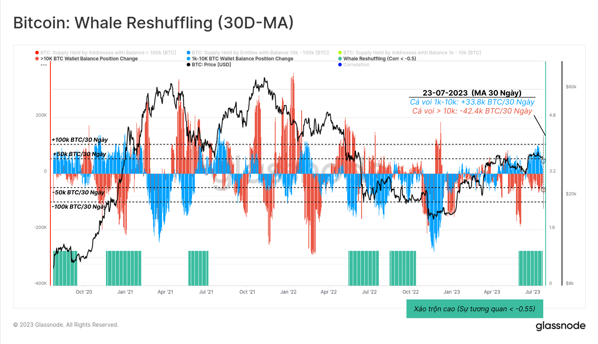 - 🔵 Cá voi có 10k-100k BTC đã giảm -49k BTC trong số dư.