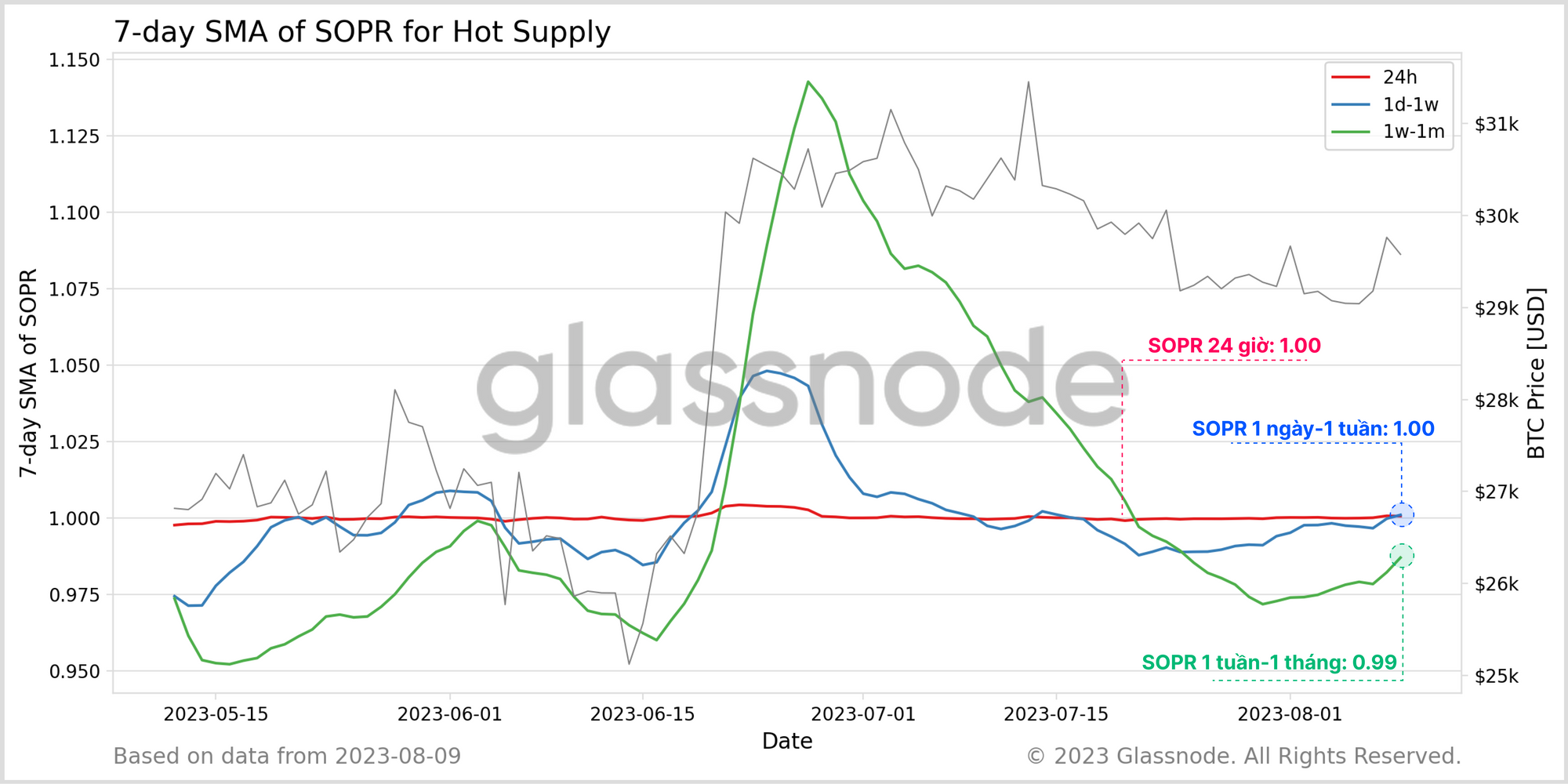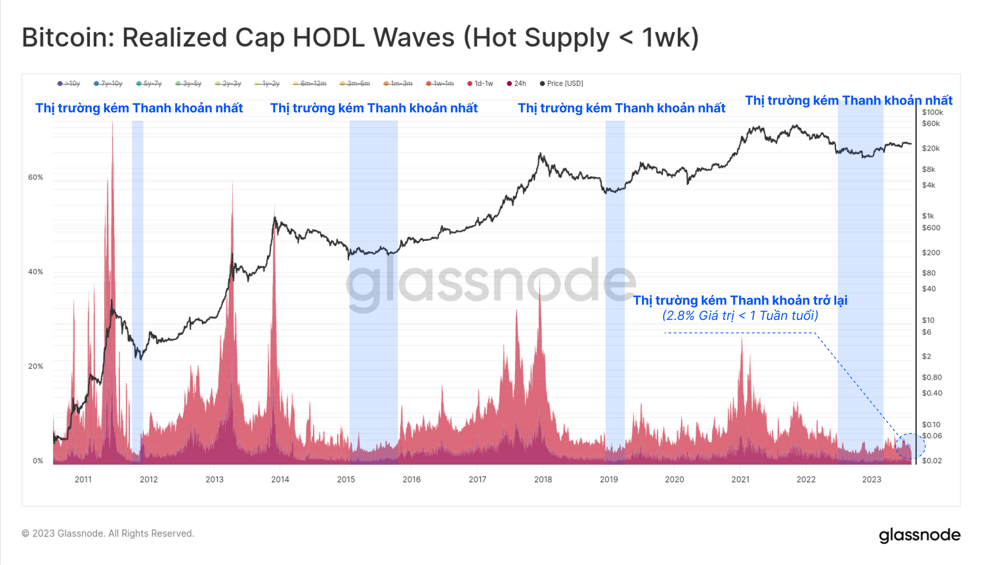 - 🔴 Nguồn cung nóng (< 1 tuần) là phần hoạt động mạnh nhất và có tính thanh khoản cao nhất đã giao dịch trong vòng 7 ngày qua.