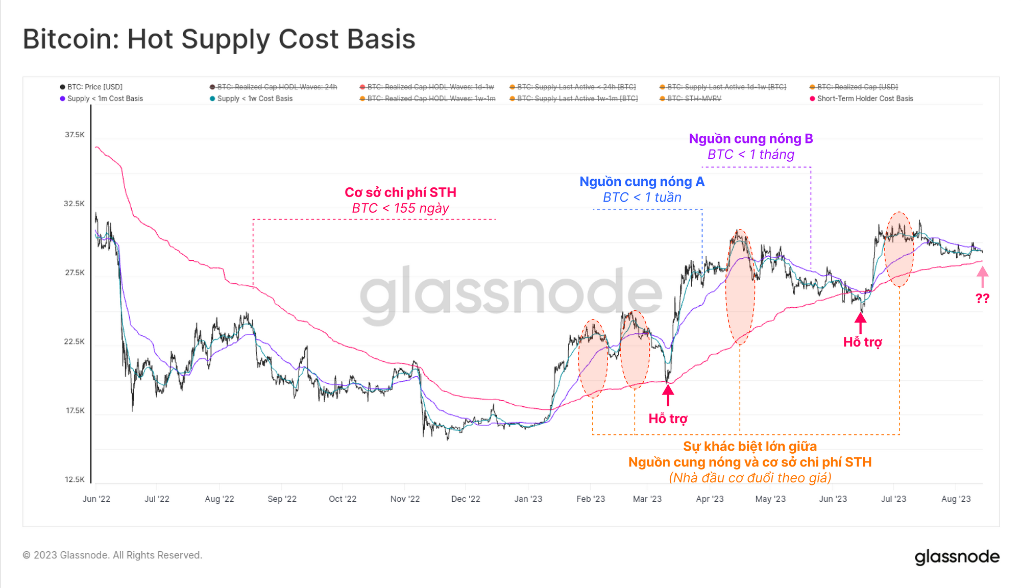 - Độ lệch lớn giữa cơ sở chi phí Nguồn cung nóng và cơ sở chi phí STH thường liên kết với các đỉnh thị trường cục bộ.