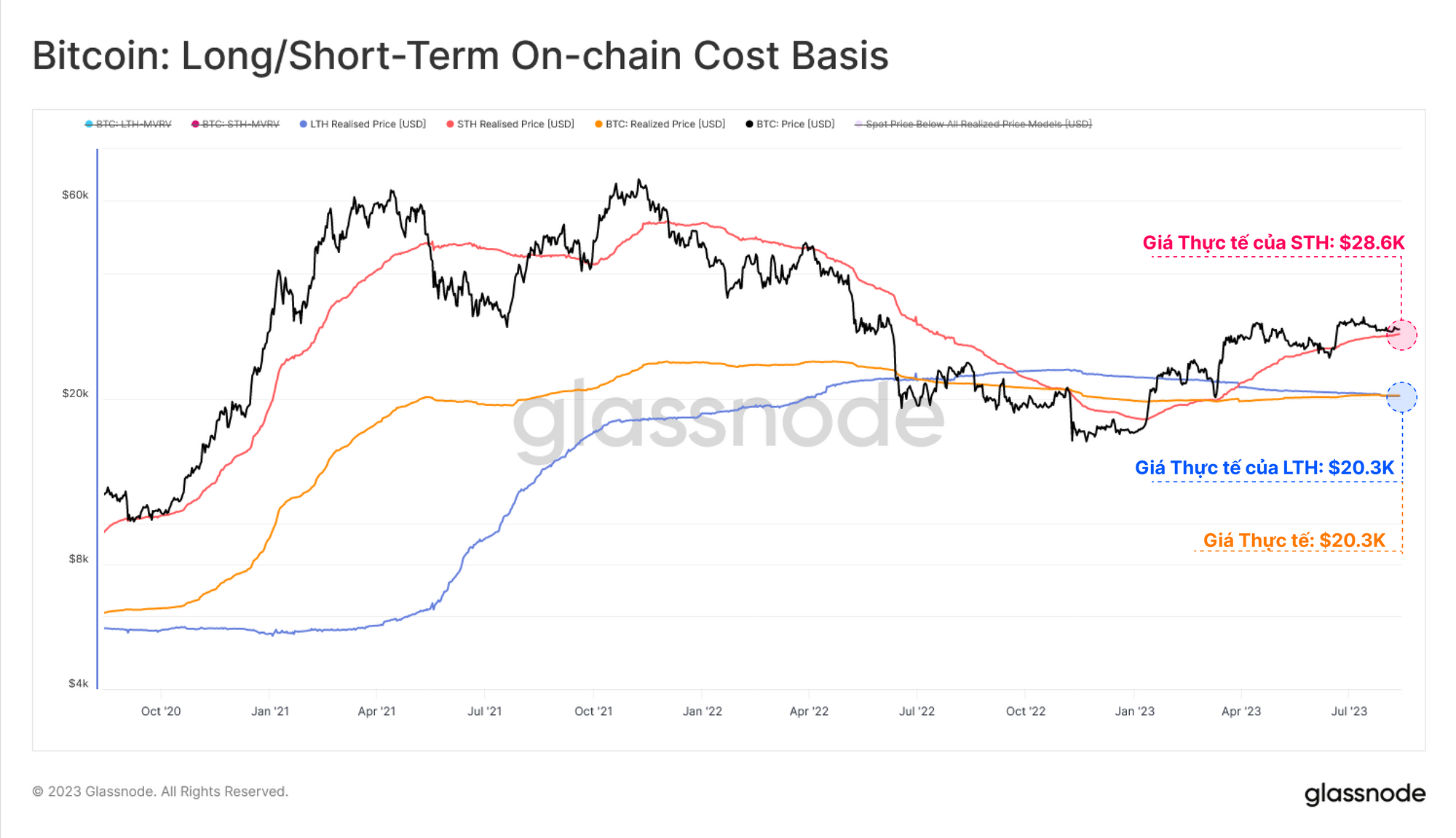 Chúng ta có thể thấy điều này trong các ước tính cơ sở chi phí cho mỗi nhóm. Cơ sở chi phí STH tăng 59% so với đầu năm, hiện đang giao dịch ở mức $28.6k. Cơ sở chi phí LTH đang giao dịch thấp hơn nhiều ở mức khoảng $20.3k.