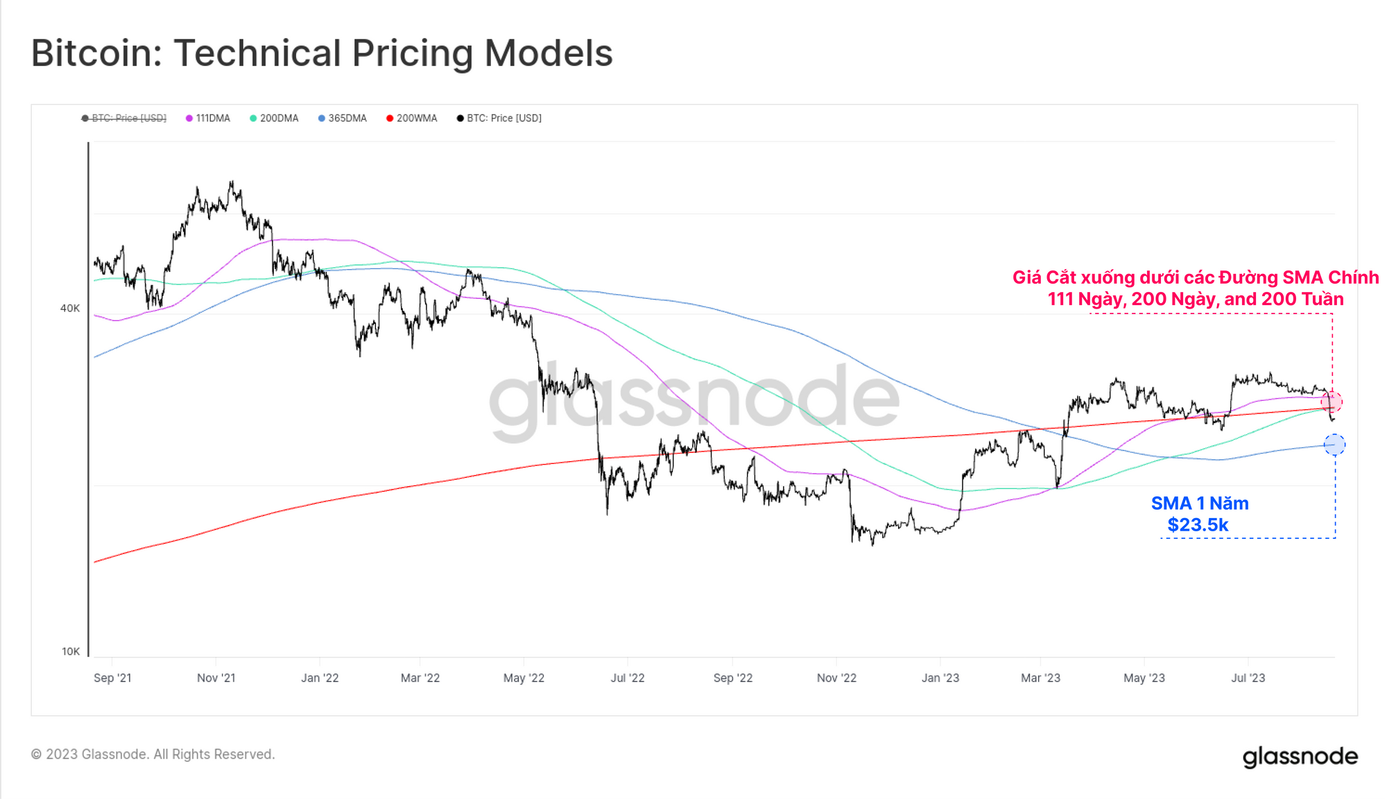 Sau vài tuần giao dịch trên $29.3k giá BTC đã sụt giảm mạnh, cắt qua một số đường trung bình động dài hạn, bao gồm các đường 111 ngày, 200 ngày và 200 tuần. Nến tuần đóng quanh mức $26.1k cho thấy thị trường đã mất đi các mốc hỗ trợ đáng kể và những nhà đầu cơ giá lên hiện đang phải đương đầu với nhiều khó khăn.