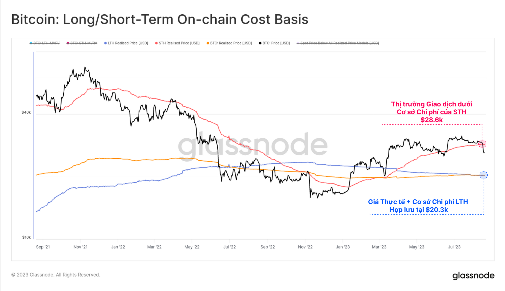 Đợt bán tháo cũng đẩy giá xuống dưới cơ sở chi phí của Người nắm giữ Ngắn hạn, một mô hình giá on-chain trong quá khứ đã cung cấp ngưỡng hỗ trợ trong các xu hướng tăng giá mạnh mẽ. Giá Thực tế và cơ sở chi phí của Người nắm giữ Dài hạn hiện đang ở dưới mức đó một khoảng ($20.3k), điều này đặt thị trường vào một vị trí hơi bấp bênh từ quan điểm tâm lý.