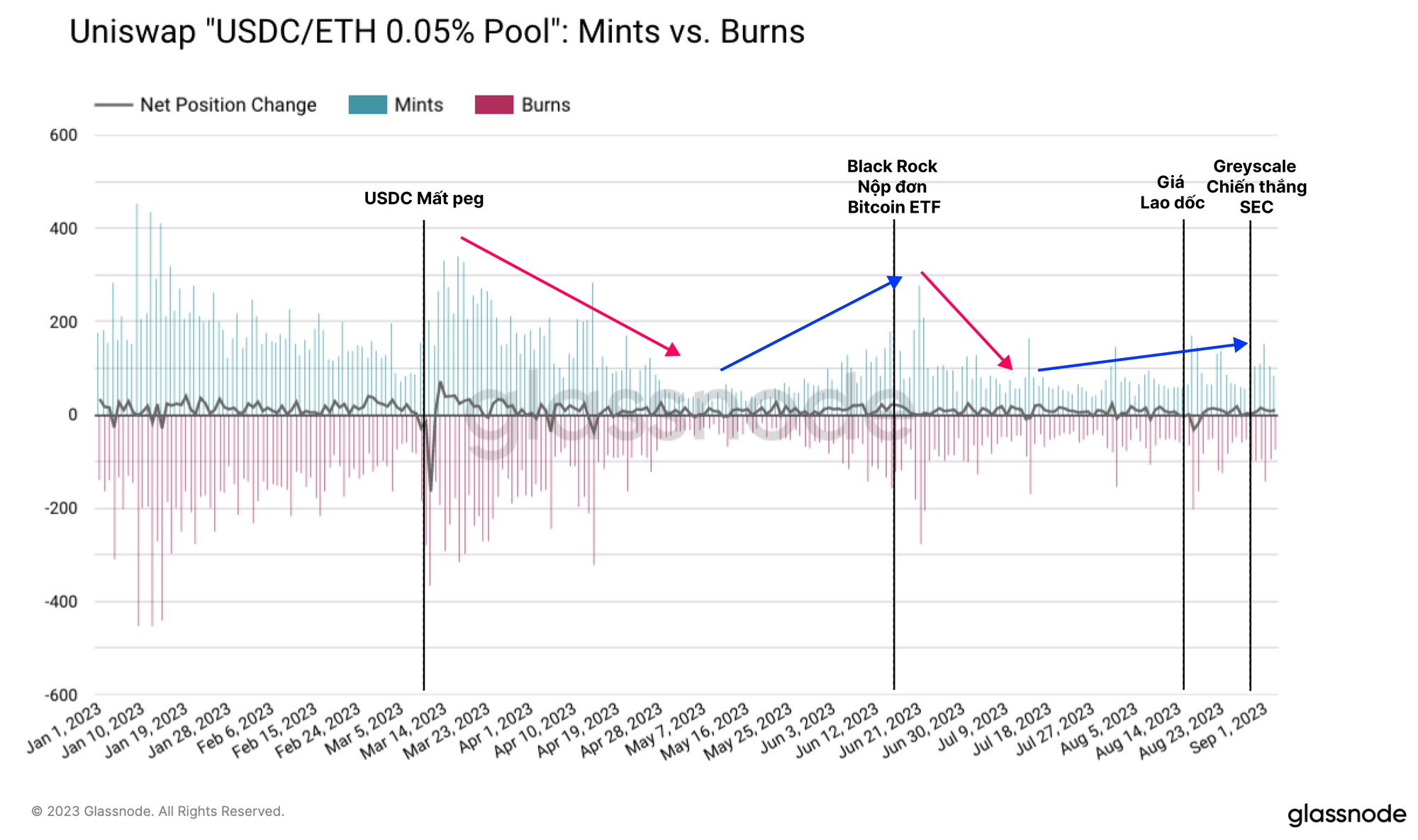 - Số lần đúc mỗi ngày (mint) thể hiện số lượng vị thế thanh khoản được mở bởi LP và