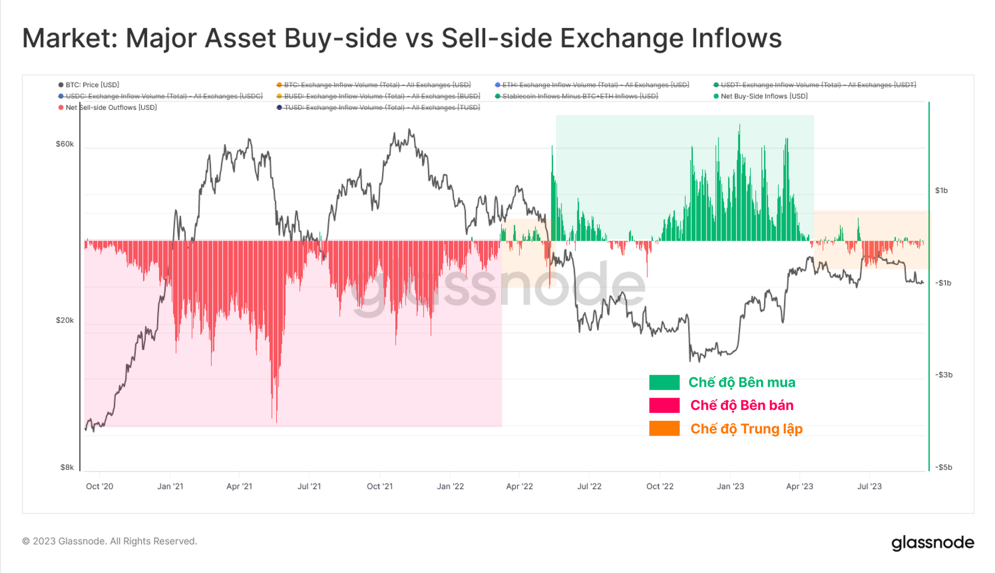 Chu kỳ tăng giá năm 2021 rõ ràng bị chi phối bởi áp lực bên bán ròng khi các nhà đầu tư chốt lời trong sự hưng phấn của xu hướng tăng. Sự sụp đổ của LUNA-UST và 3AC vào giữa năm 2022 báo hiệu sự chuyển hướng quay trở lại chế độ tích lũy ròng khi các nhà đầu tư nỗ lực thiết lập mức đáy thị trường.