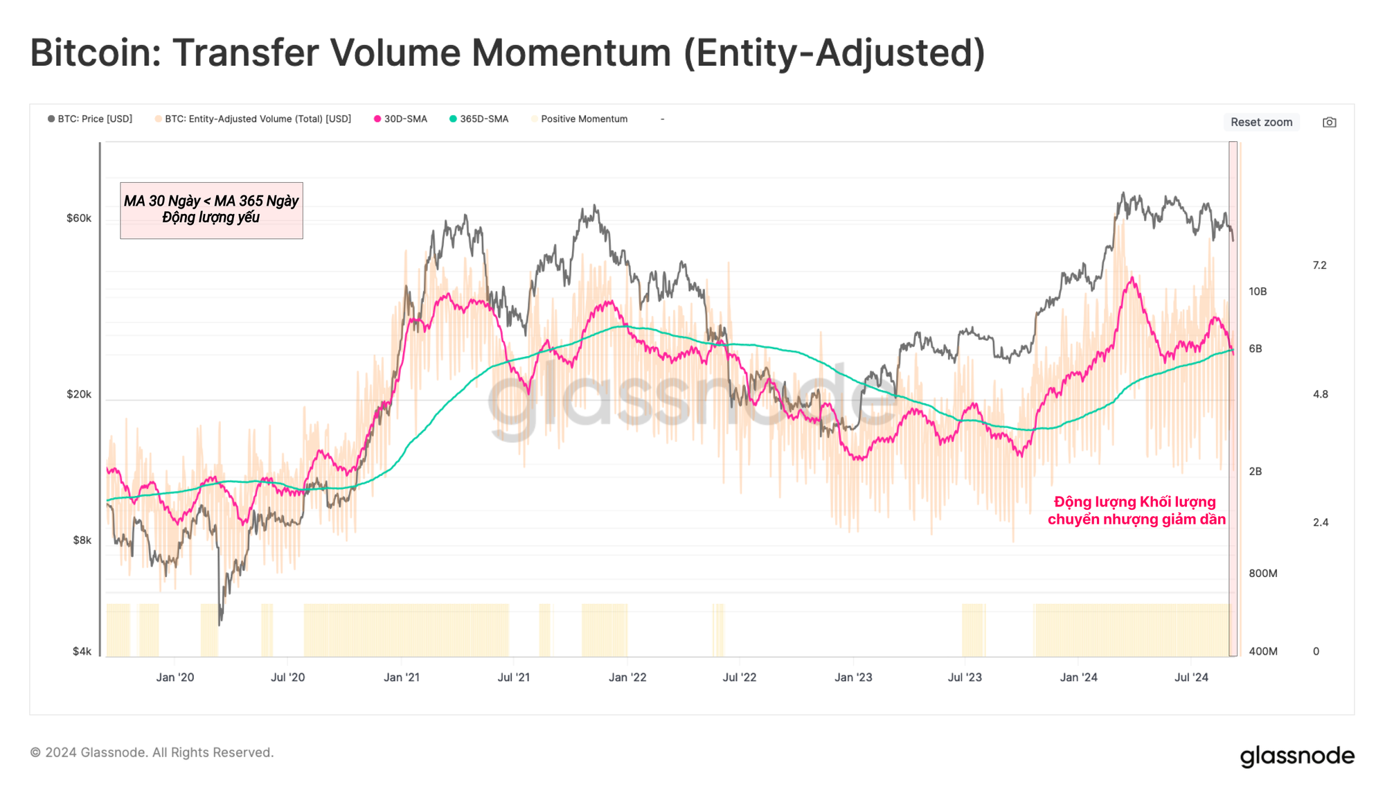 Từ đó, có thể thiết lập một quan sát tương tự, với động lượng khối lượng giao ngay tiếp tục suy giảm. Điều này làm tăng thêm sức nặng cho ý tưởng rằng đã có sự suy giảm đáng kể trong hoạt động giao dịch trong quý vừa qua.