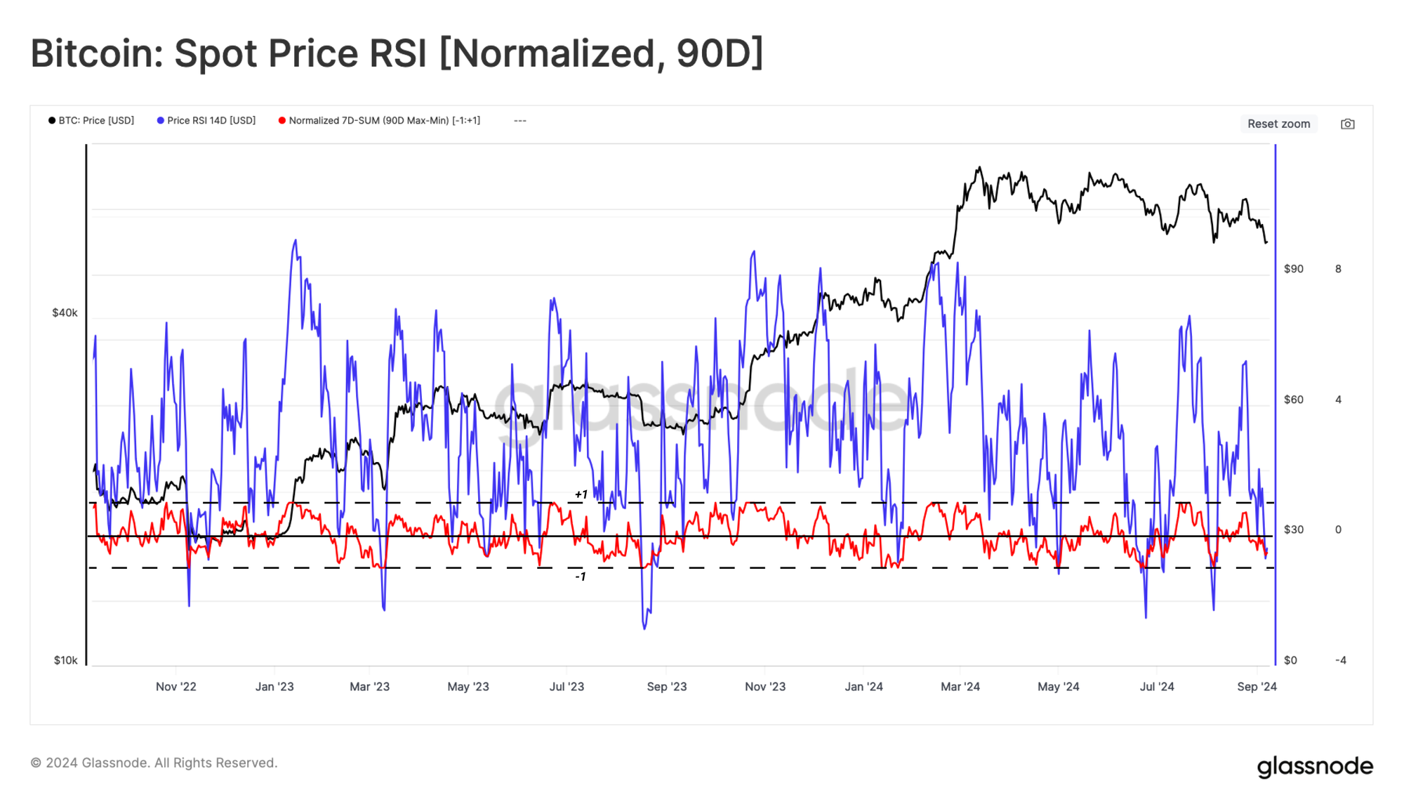Cuối cùng, chúng tôi có thể đánh giá động lượng của hành động giá đối với giá Bitcoin. Ở đây, có thể thấy một mức độ do dự, với các điểm dữ liệu tích cực và tiêu cực xảy ra trong tháng 8. Điều này hoàn toàn trái ngược với hai chỉ số được nêu bật trước đó, với cả hai đều có xu hướng tiêu cực rõ rệt trong cùng thời điểm.