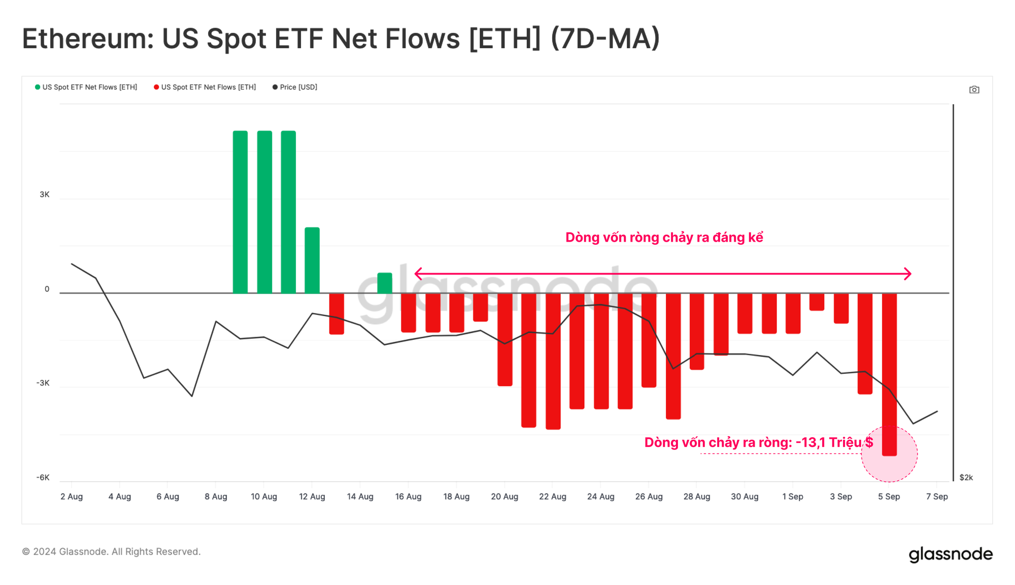 Tổng hợp lại, các quỹ Ethereum ETF đã chứng kiến tổng dòng vốn chảy ra là -13,1 triệu USD. Điều này làm nổi bật sự chênh lệch về quy mô nhu cầu giữa BTC và ETH, ít nhất là trong bối cảnh điều kiện thị trường hiện tại.