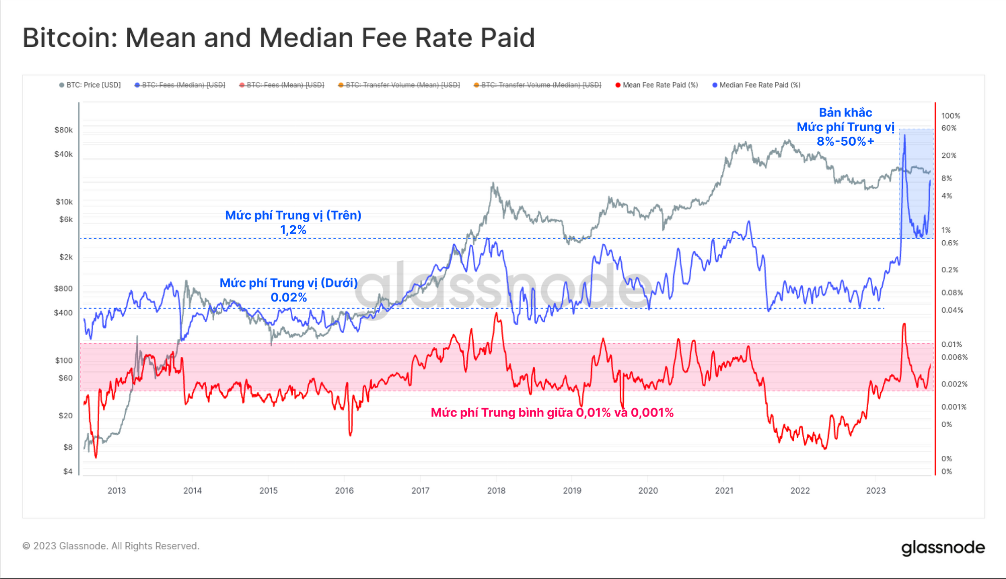 Tuy nhiên, đối với mức phí trung vị, chúng tôi thấy rằng các giao dịch có độ khẩn cấp cao sẵn sàng trả mức phí lên tới 1,2% trong thời gian thị trường tăng giá đạt đỉnh, khi thị trường bước vào trạng thái hưng phấn. Vào năm 2023, chúng tôi đã thấy điều này ở các bản khắc, khi mức phí lên tới 10%, thậm chí trên 50% của giá trị được chuyển ngày càng trở nên phổ biến.