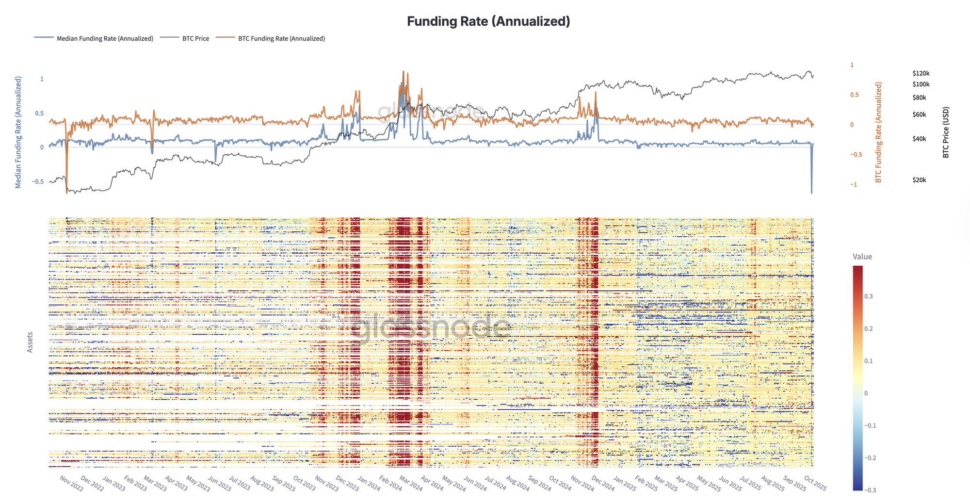Sau đợt thanh lý đòn bẩy lịch sử, căng thẳng trên thị trường tương lai ngày càng trầm trọng khi phí funding giảm xuống mức chưa từng thấy kể từ sự sụp đổ của FTX vào cuối năm 2022.