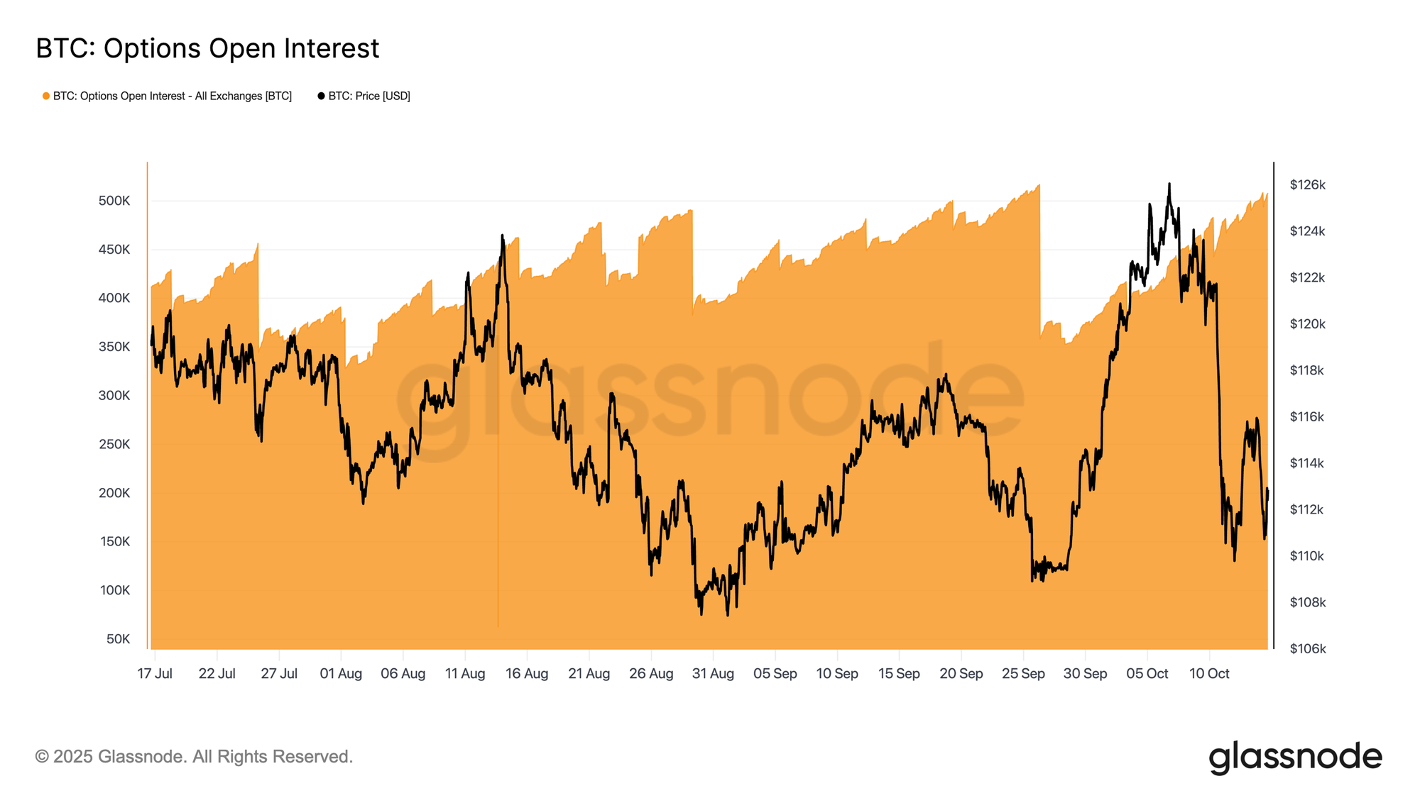 Lượng hợp đồng mở (OI) quyền chọn Bitcoin đã nhanh chóng được xây dựng lại sau đợt đáo hạn lớn vào ngày 26 tháng 9. Khối lượng OI đã leo trở lại gần mức ATH, nhấn mạnh tốc độ nhanh chóng mà các nhà giao dịch tái thiết lập trạng thái ngay khi các vị thế cũ bị thanh lý. Sự biến động và các đợt thanh lý gần đây có thể đã đẩy nhanh sự phục hồi này khi những người tham gia tìm cách phòng ngừa rủi ro và quản lý rủi ro giảm giá. Sự phục hồi nhanh chóng này cho thấy sự tham gia mạnh mẽ và sự phụ thuộc liên tục vào các quyền chọn cho cả mục đích phòng hộ lẫn định vị chiến thuật trong một môi trường đầy biến động.