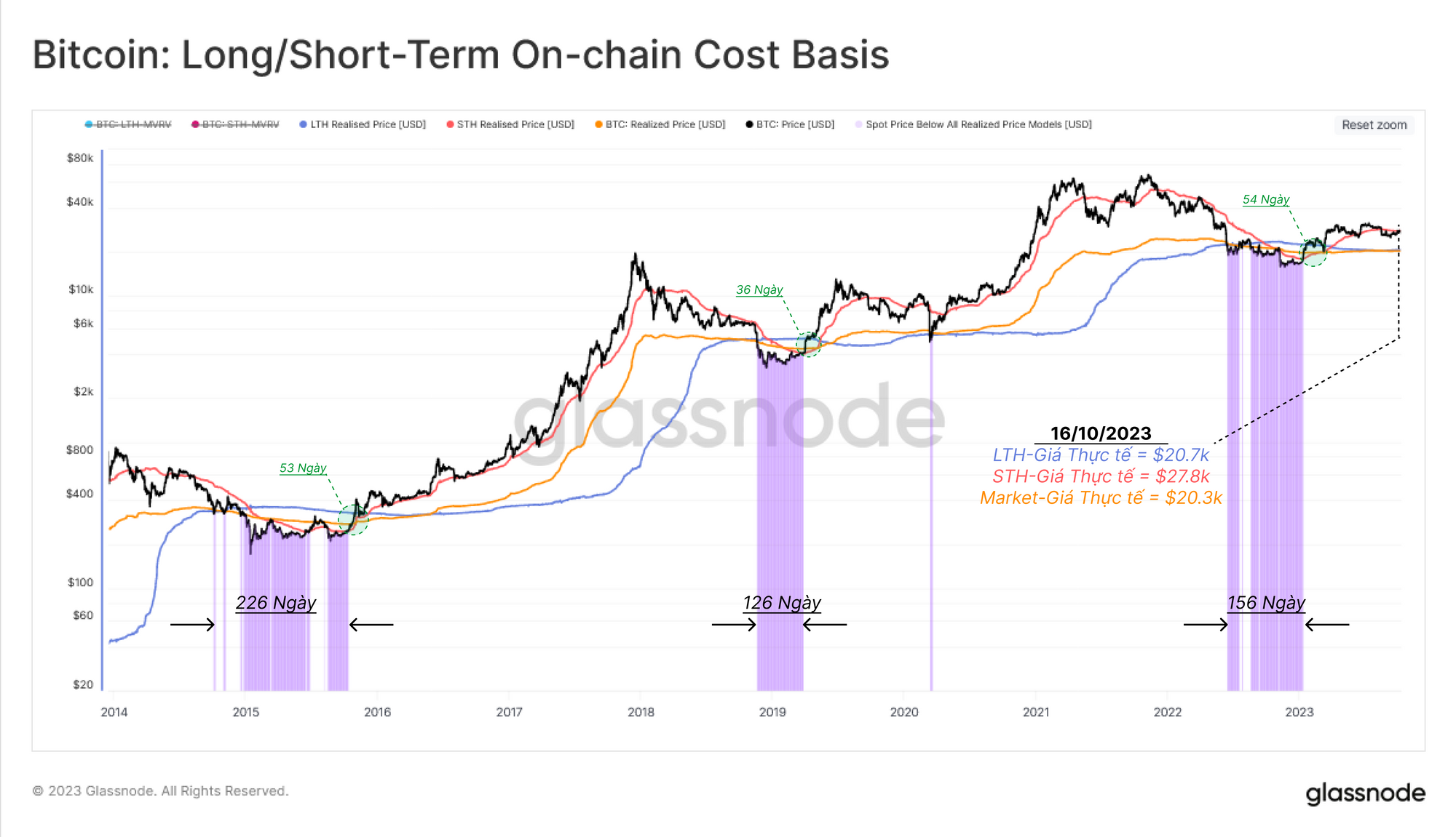 Bằng cách đo lường sự khác biệt giữa tài sản được nắm giữ bởi các nhà đầu tư dài hạn và ngắn hạn, chúng tôi có thể mô hình hóa sự lên xuống của các lực lượng cung và cầu. Từ đó, chúng ta có thể thấy rằng cấu trúc thị trường hiện tại rất giống giai đoạn phục hồi trong một thị trường giá xuống lớn, với những điểm tương đồng với cả năm 2016 và 2019.