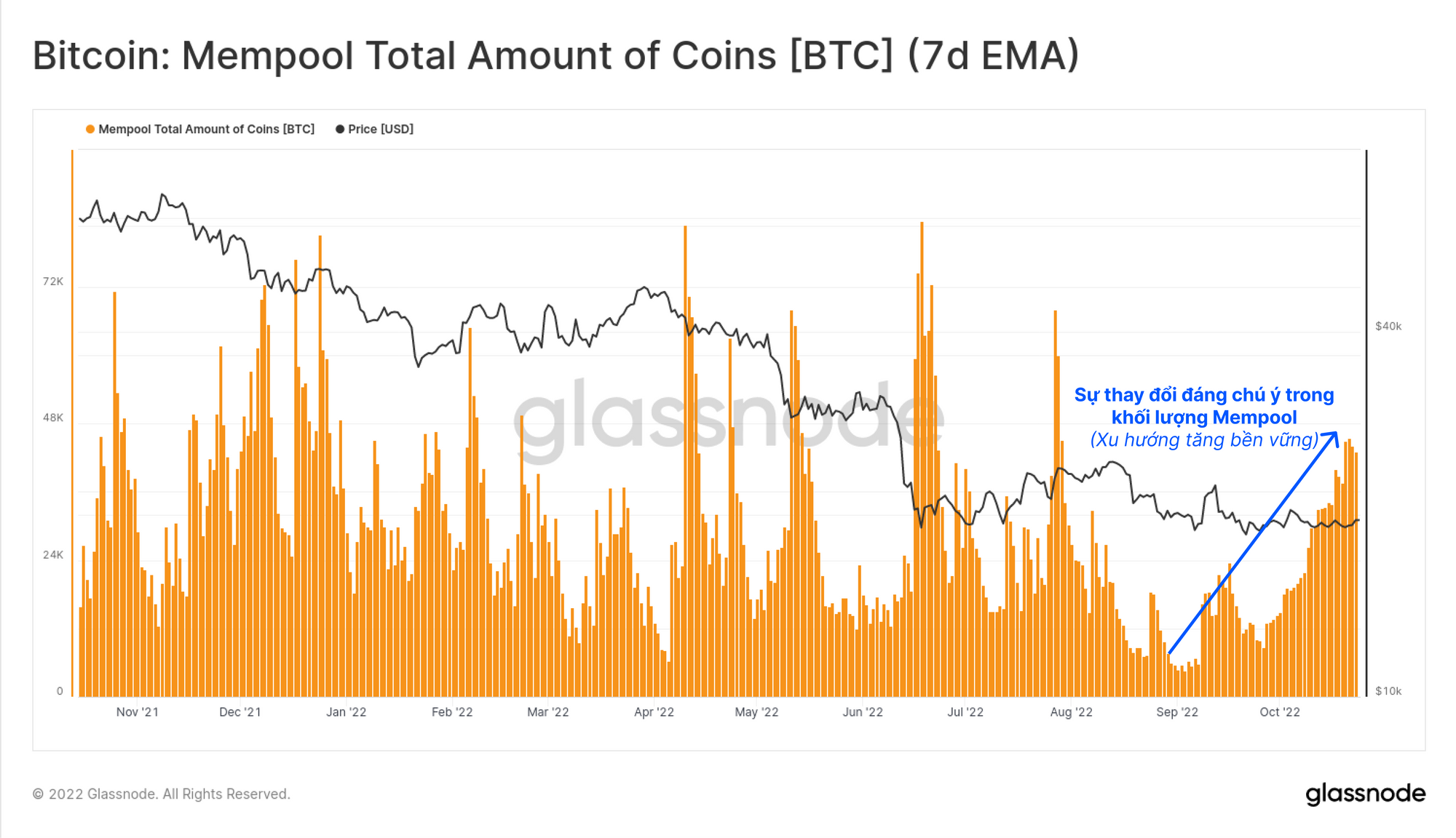 Chỉ báo Mempool cho thấy khối lượng BTC được chuyển trong các giao dịch đã tăng liên tục kể từ tháng 9.