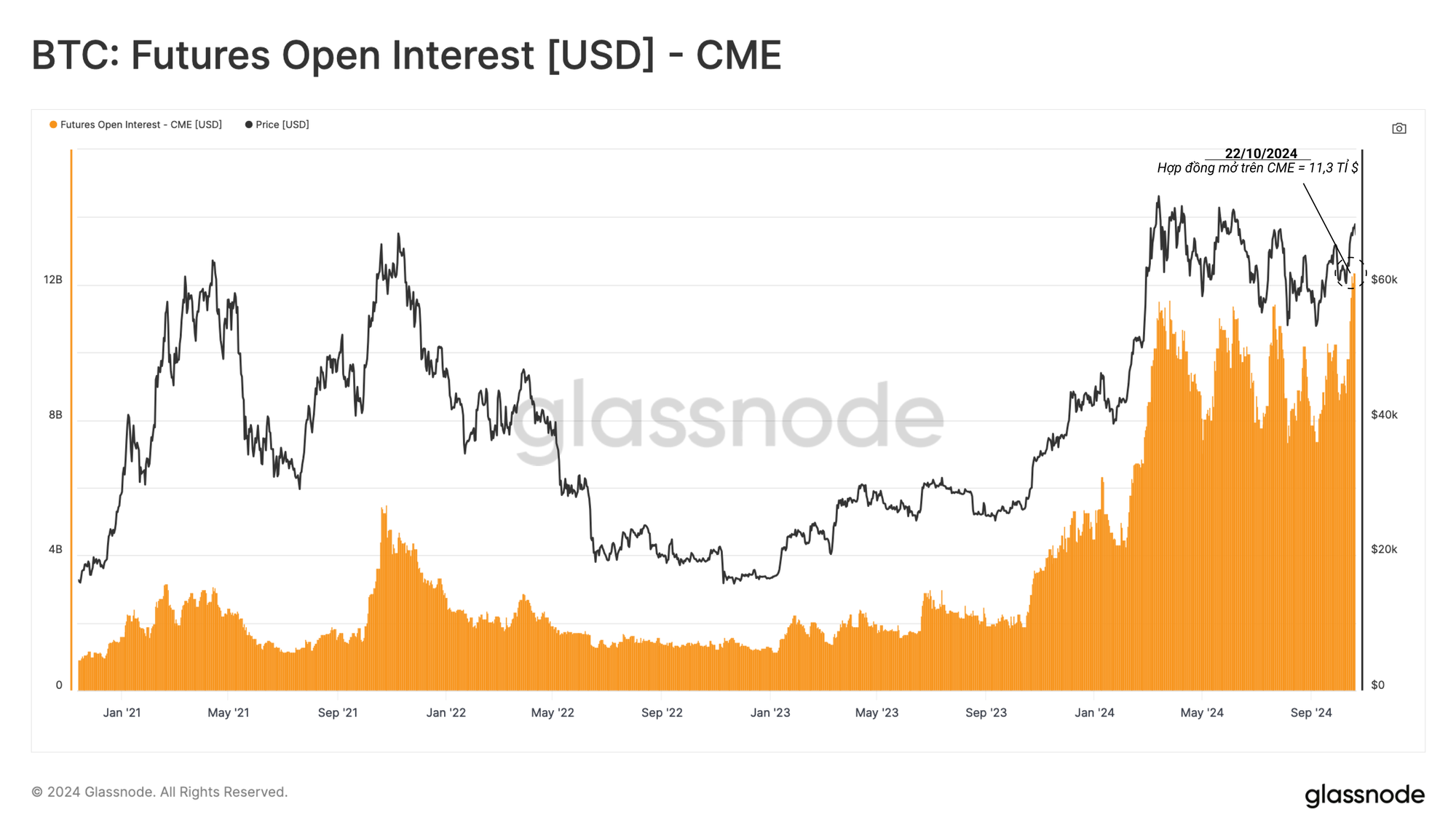 Sản phẩm này đã cung cấp cho làn sóng các nhà đầu tư tổ chức mới một công cụ để tiếp xúc với các sản phẩm phái sinh được quản lý và cơ hội nắm bắt lợi nhuận thông qua chiến lược cash-and-carry. Hợp đồng mở trên CME đã tăng vọt lên mức ATH mới là 11,3 tỉ USD, làm nổi bật hoạt động gia tăng của các tổ chức trong không gian tài sản kỹ thuật số.