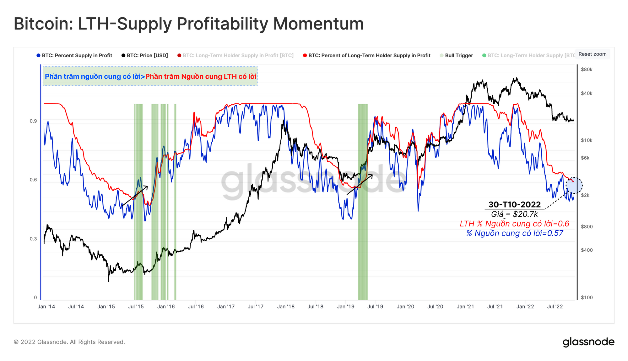So với cuối chu kỳ 2018-2019, cả mức độ phân phối lại BTC và mức độ tập trung nguồn cung cuối cùng tại vùng đáy đều thấp hơn trong chu kỳ 2022. Điều này bổ sung thêm bằng chứng cho nhận định rằng BTC có thể sẽ tiếp tục tích luỹ trong một thời gian nữa để thiết lập vùng giá đáy của chu kỳ này.