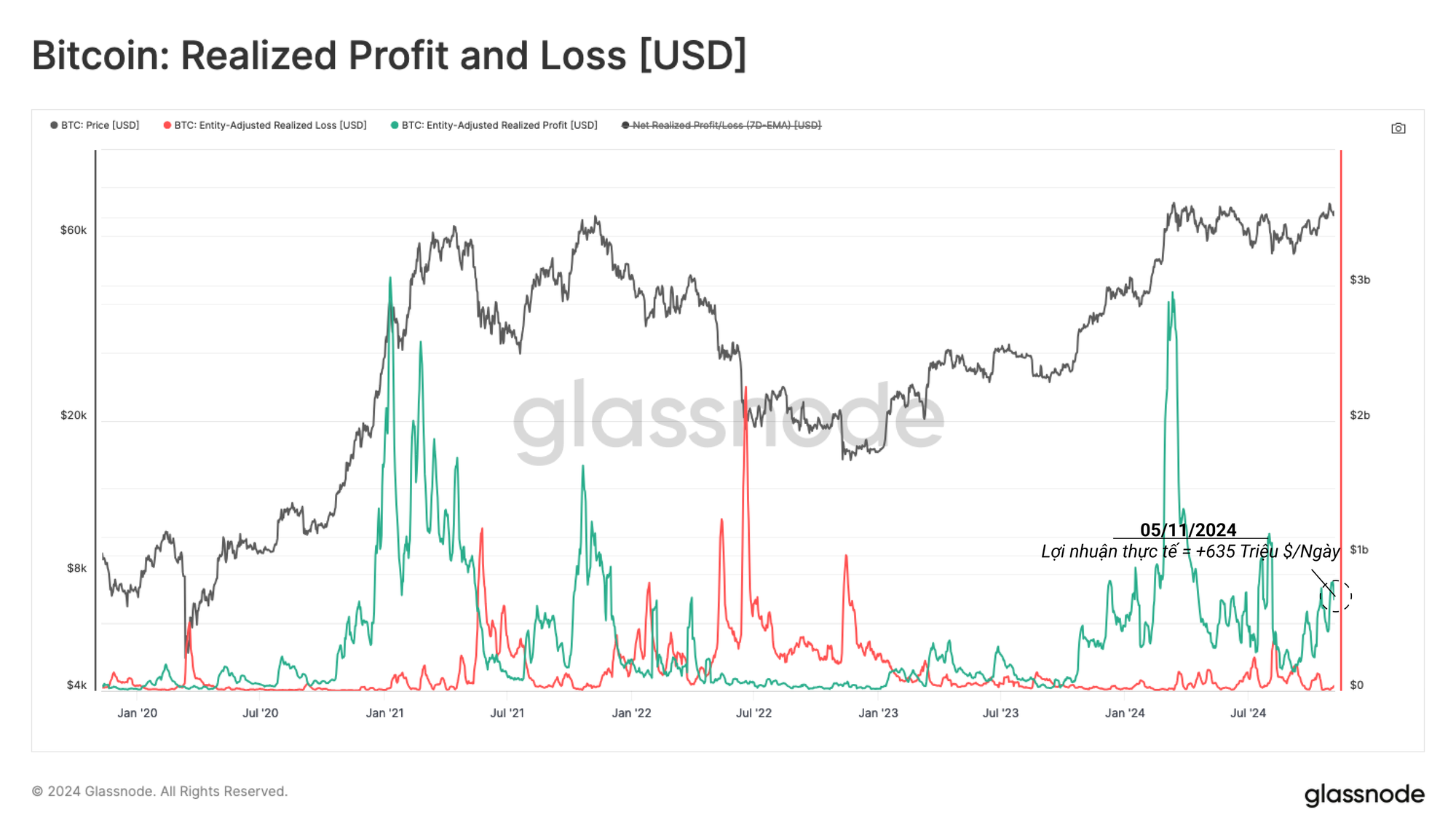 Chúng tôi cũng quan sát thấy sự gia tăng không hề nhỏ trong khối lượng chốt lời, tăng +635 triệu USD/ngày.
