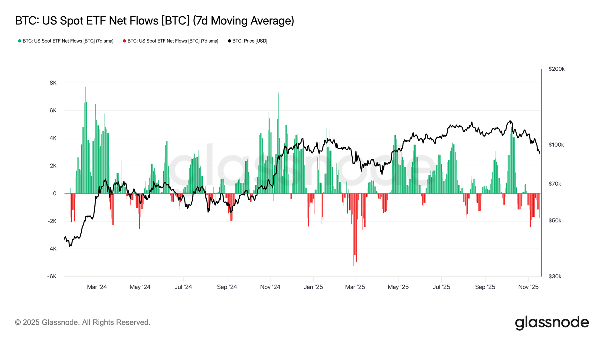 Sự vắng bóng kéo dài của dòng tiền vào ETF cho thấy một trụ cột nhu cầu chính vẫn chưa quay trở lại tham gia thị trường, khiến thị trường thiếu đi một nguồn cầu chủ chốt trong chu kỳ này.