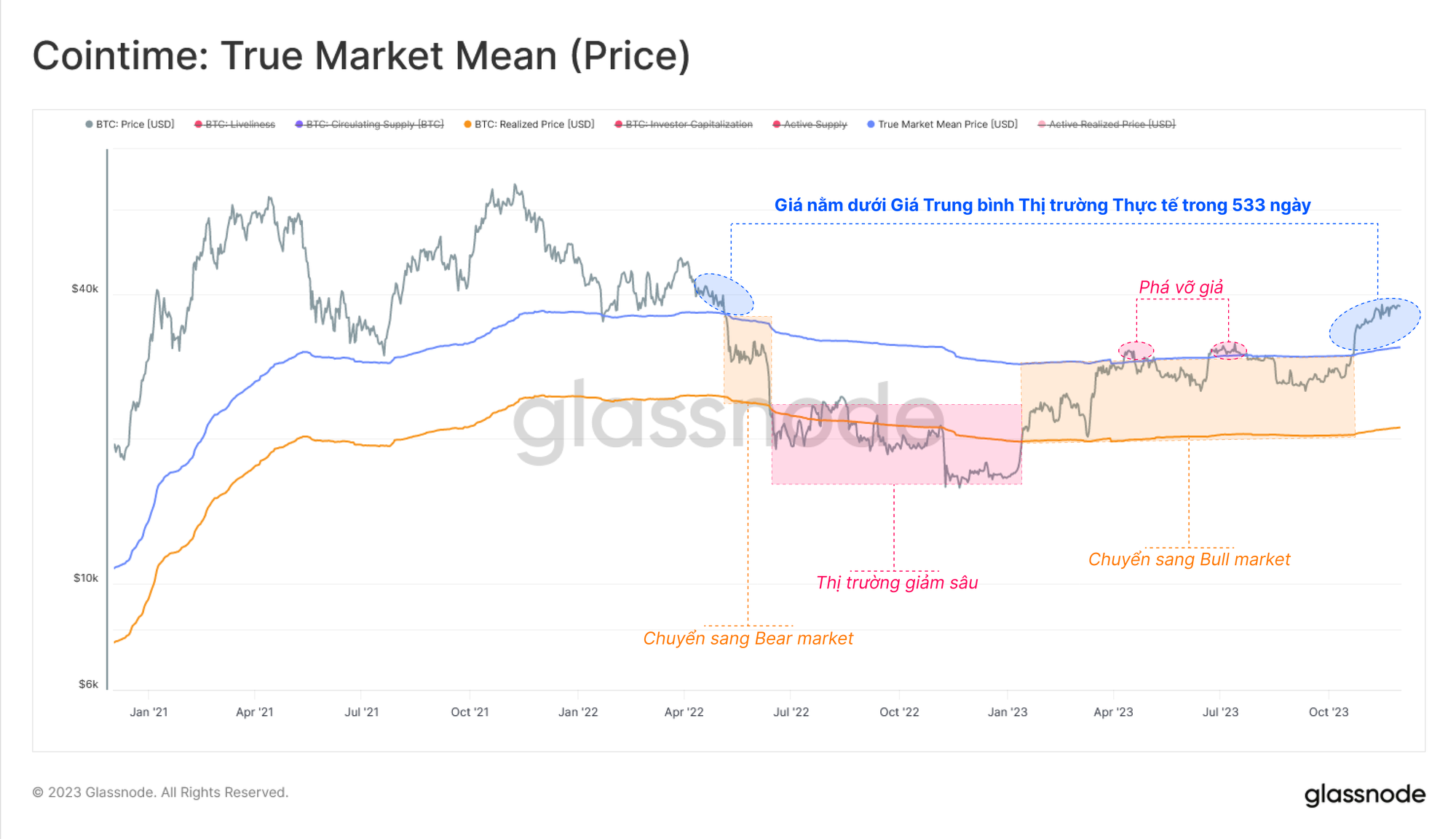 Đợ tăng giá năm 2023 đã đẩy Bitcoin lên trên hai mức giá on-chain quan trọng: