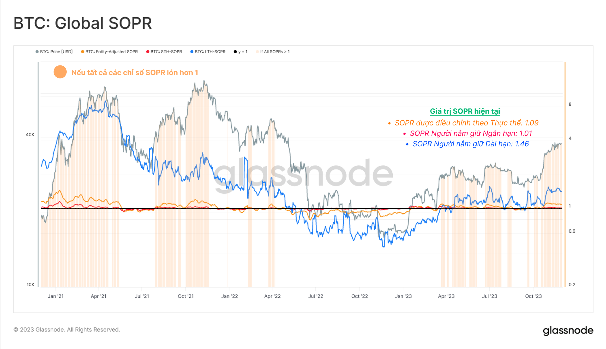 - 🔴 Người nắm giữ Ngắn hạn: STH-SOPR = 1.01 (lợi nhuận trung bình +1%)
