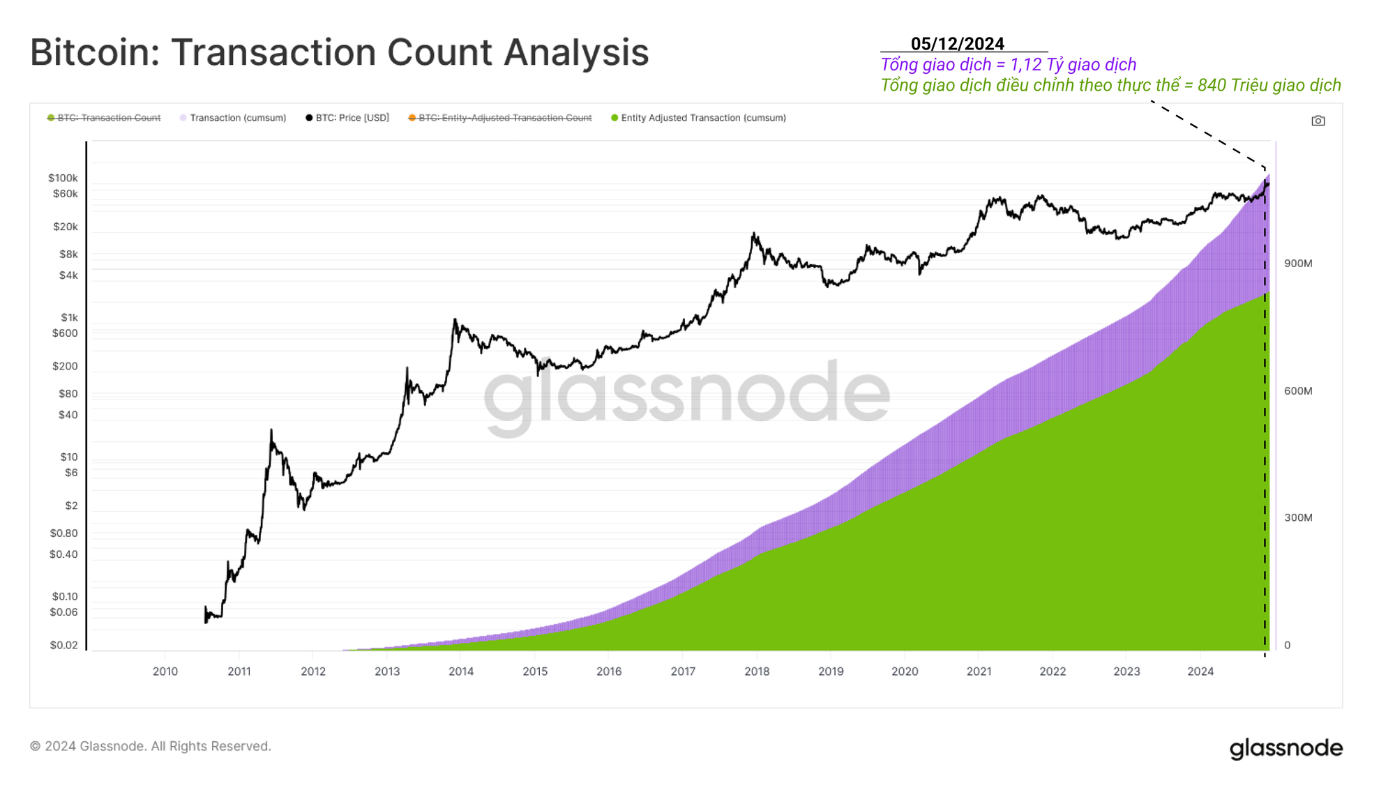 Bitcoin cũng đã trải qua sự tăng trưởng giao dịch đáng kinh ngạc. Cho đến nay, mạng lưới đã xử lý thành công 1,12 tỷ giao dịch (chưa được lọc).
