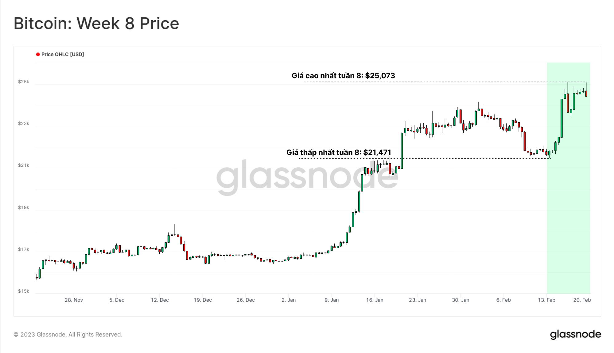 Bitcoin đã có một tuần tăng giá mạnh mẽ khác khi phục hồi hoàn toàn từ đợt điều chỉnh của tuần trước và đạt trên $25,000, mức giá cao nhất kể từ tháng 6 năm 2022. Thị trường vẫn thể hiện sức mạnh bất chấp áp lực dai dẳng từ môi trường pháp lý của Hoa Kỳ liên quan đến tài sản kỹ thuật số.