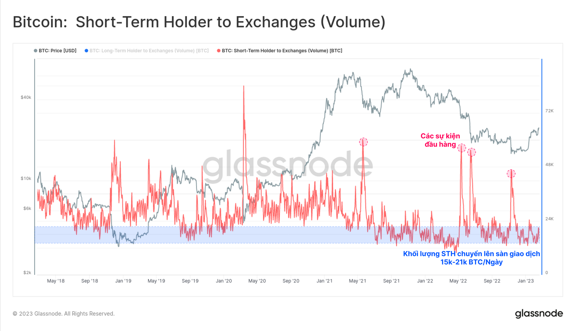 Trên cơ sở khối lượng tuyệt đối, STH dường như vẫn chưa có động lực đặc biệt để chuyển BTC lên các sàn giao dịch. Tổng khối lượng STH-Exchange đang dao động trong khoảng từ 15,000 đến 21,000 BTC/ngày, một phạm vi tương tự mà nó đã thiết lập kể từ tháng 6 năm 2021.